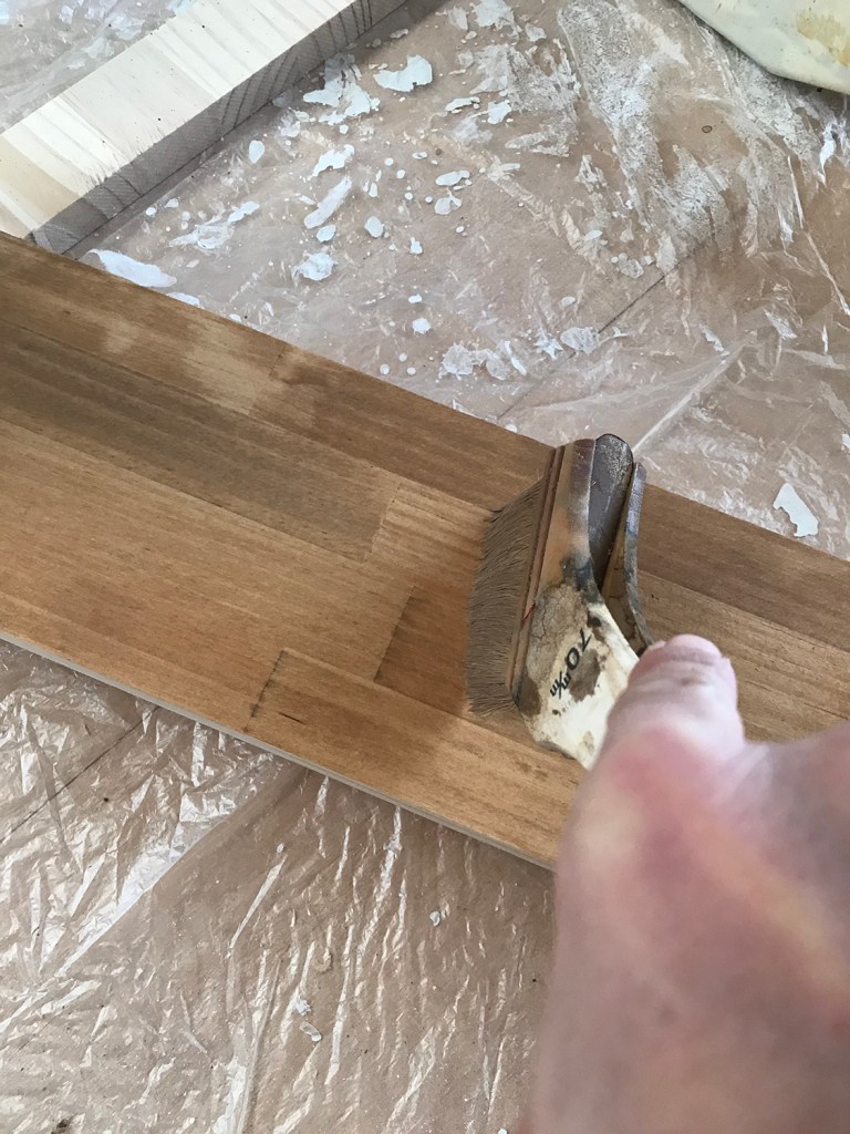 白い壁の前に置くので、木材っぽい茶色で塗装して、ナチュラルな雰囲気にします。