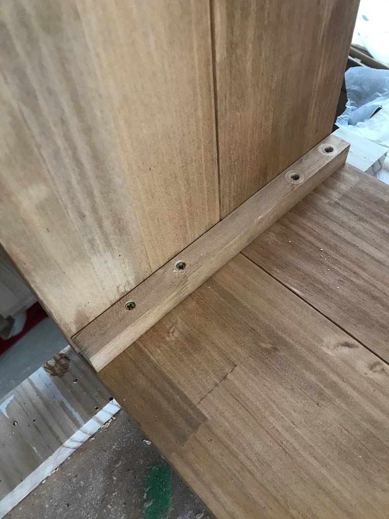 ネジ止めする前に、木材が割れないように下穴をあけときます。