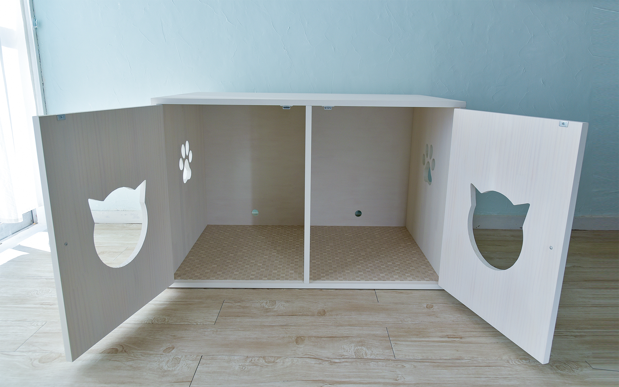 お客様から、トイレを入れてない段階で、早速猫ちゃんたちが入りました〜!と可愛い写真と共にご連絡いただきました。