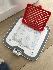 付属の乾燥剤を蓋についている入れ物にセッティング。