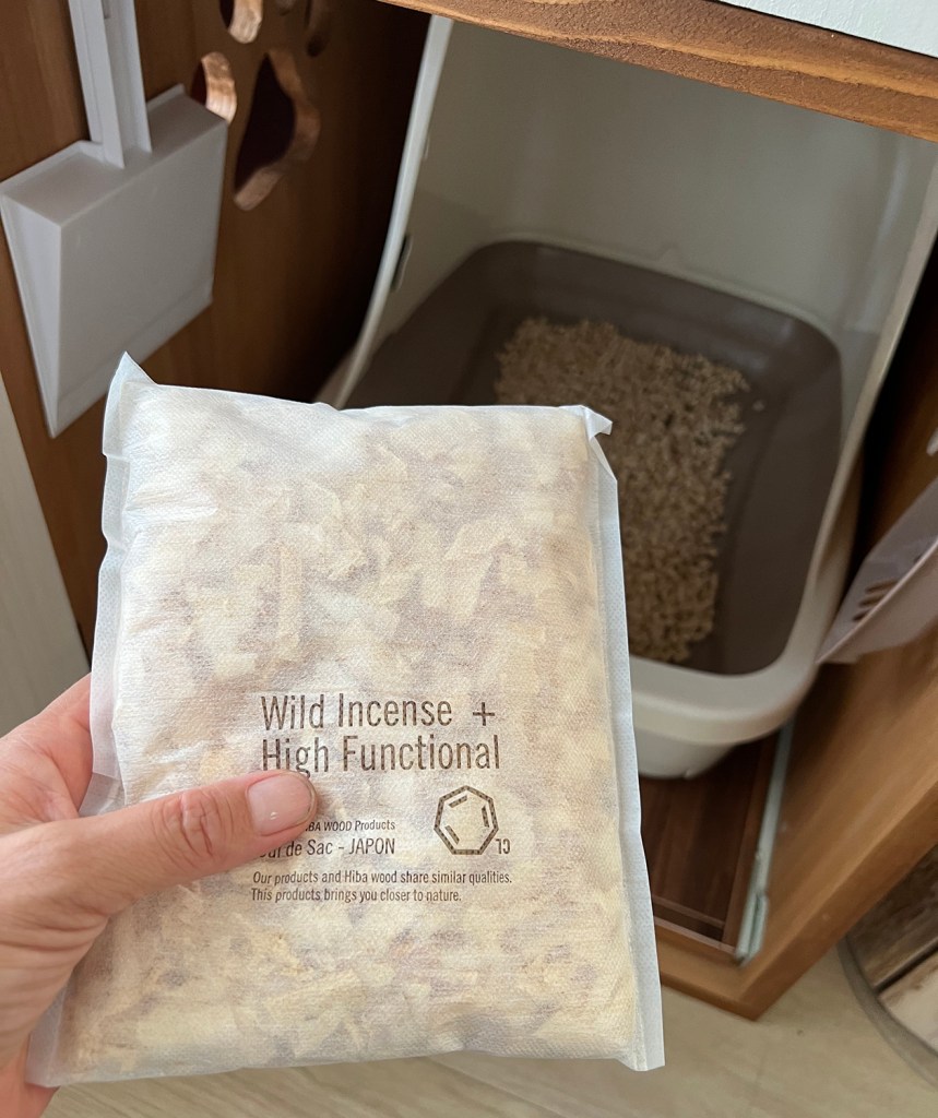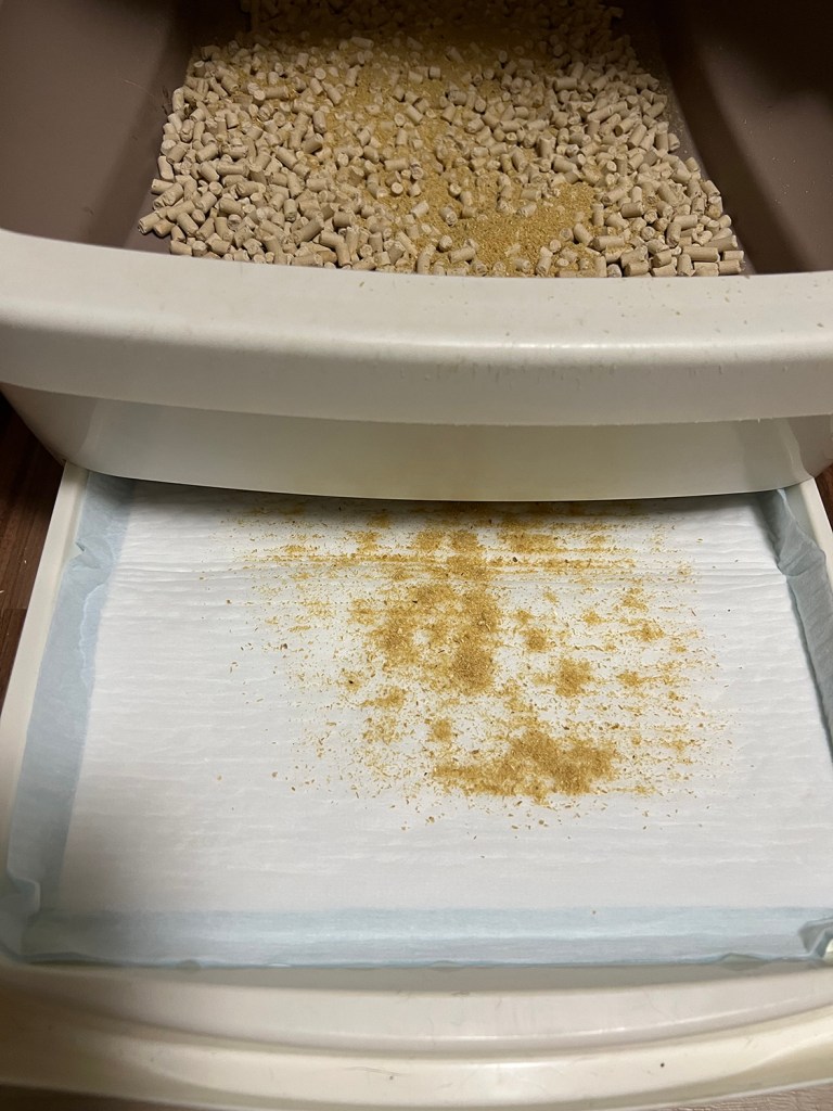粉末タイプは、猫砂の上から50cc計量スプーン2杯分ふりかけてみました。
