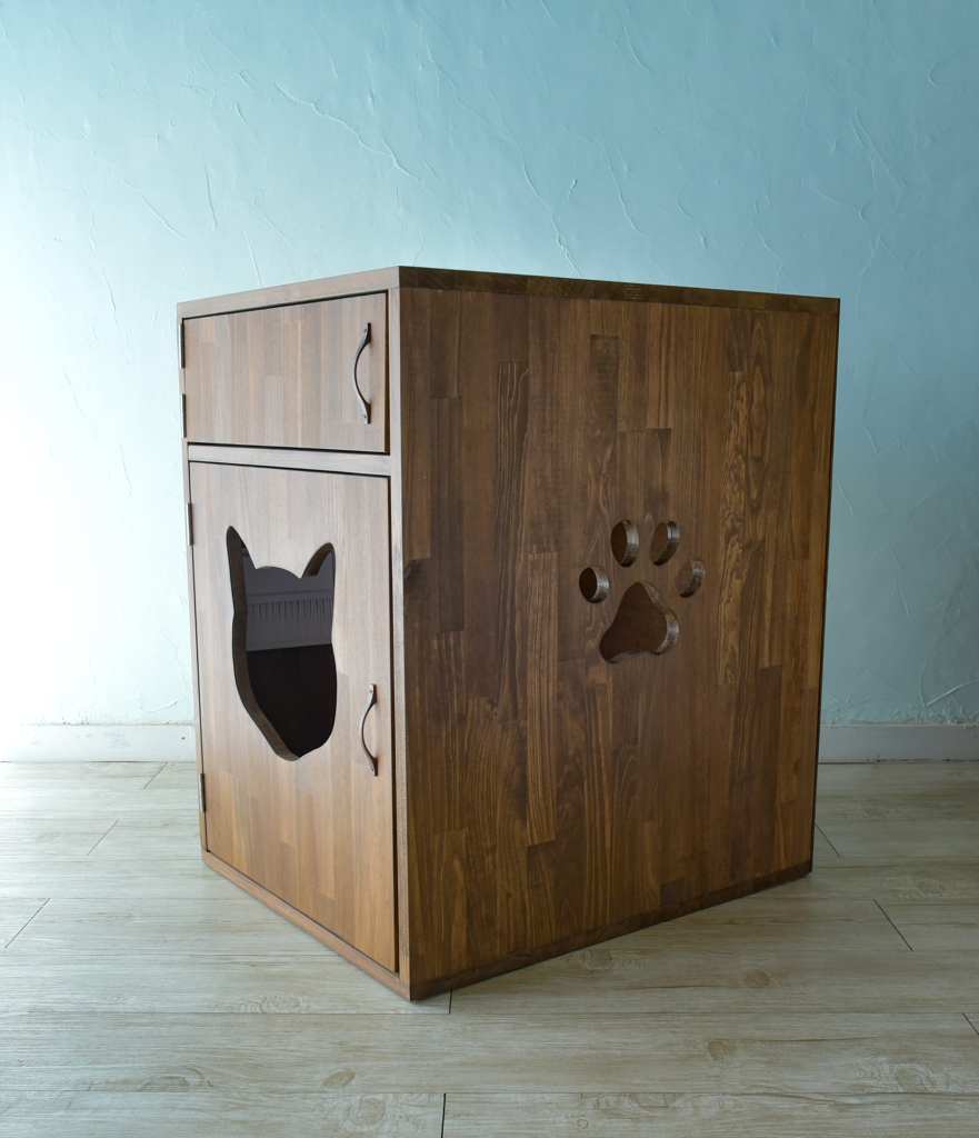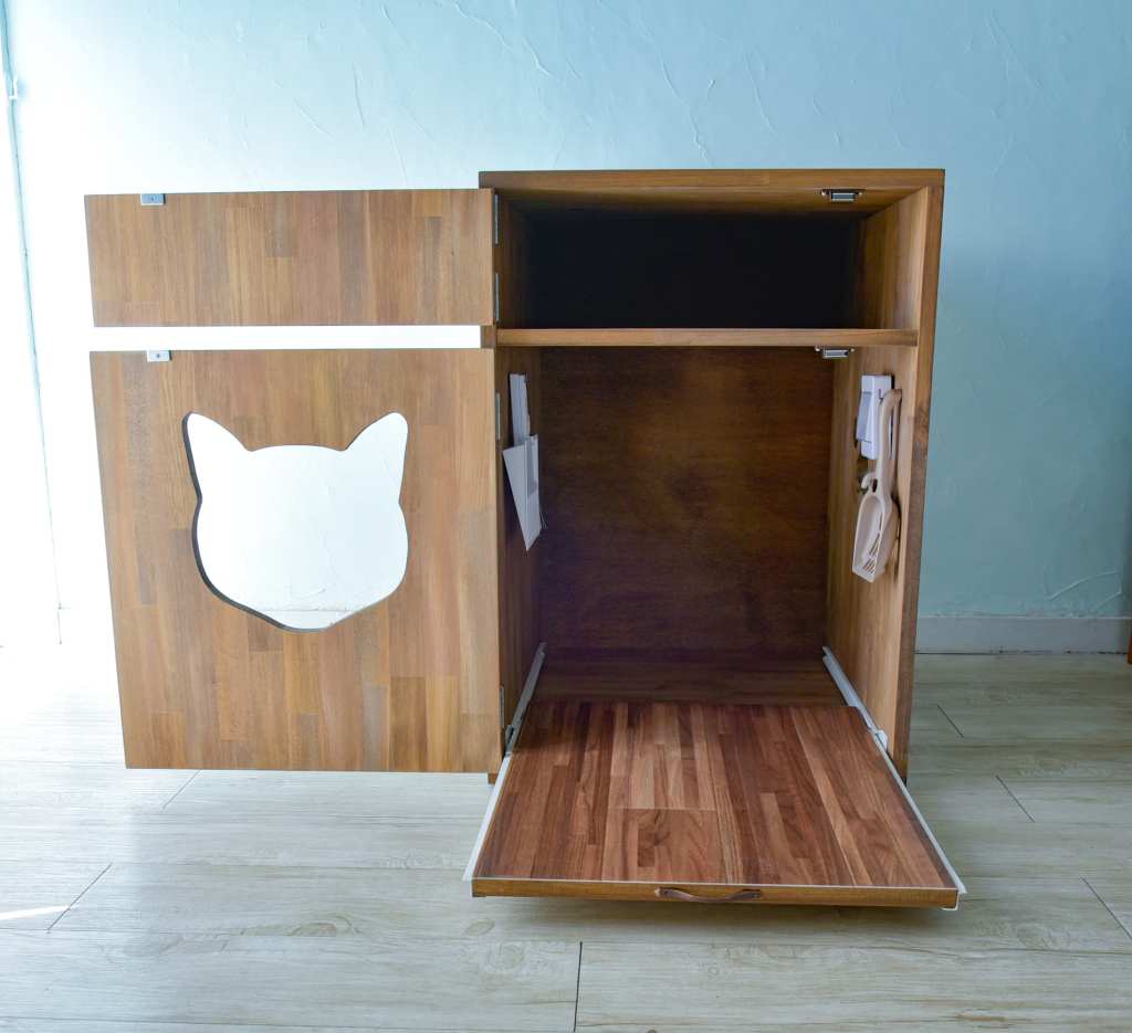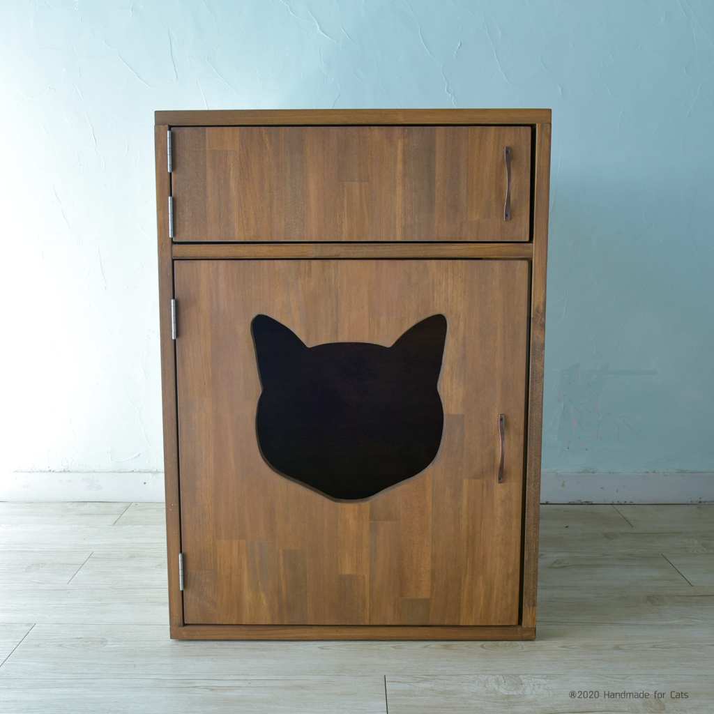 <にゃんとも・デオ・トレッタ対応>収納棚付カラーや把手も選べるセミオーダーな猫のトイレカバーハウス今まで本体と扉の2色づかいで