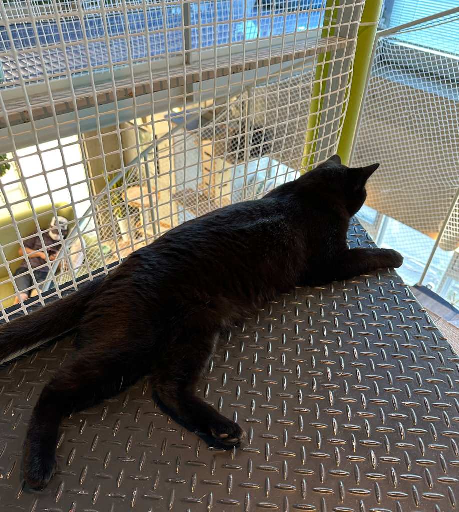 素敵なキャットタワーに、クロネコちゃんが乗ってます。