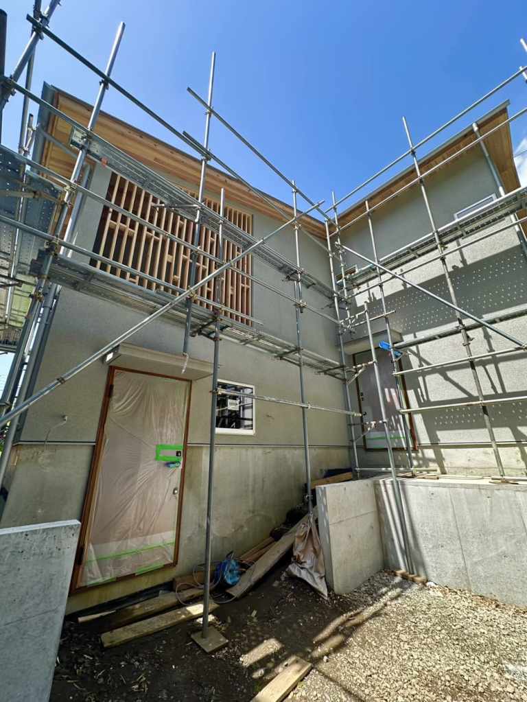 外装は吹付塗装が終わり、いよいよ家の表情が見えてきました。