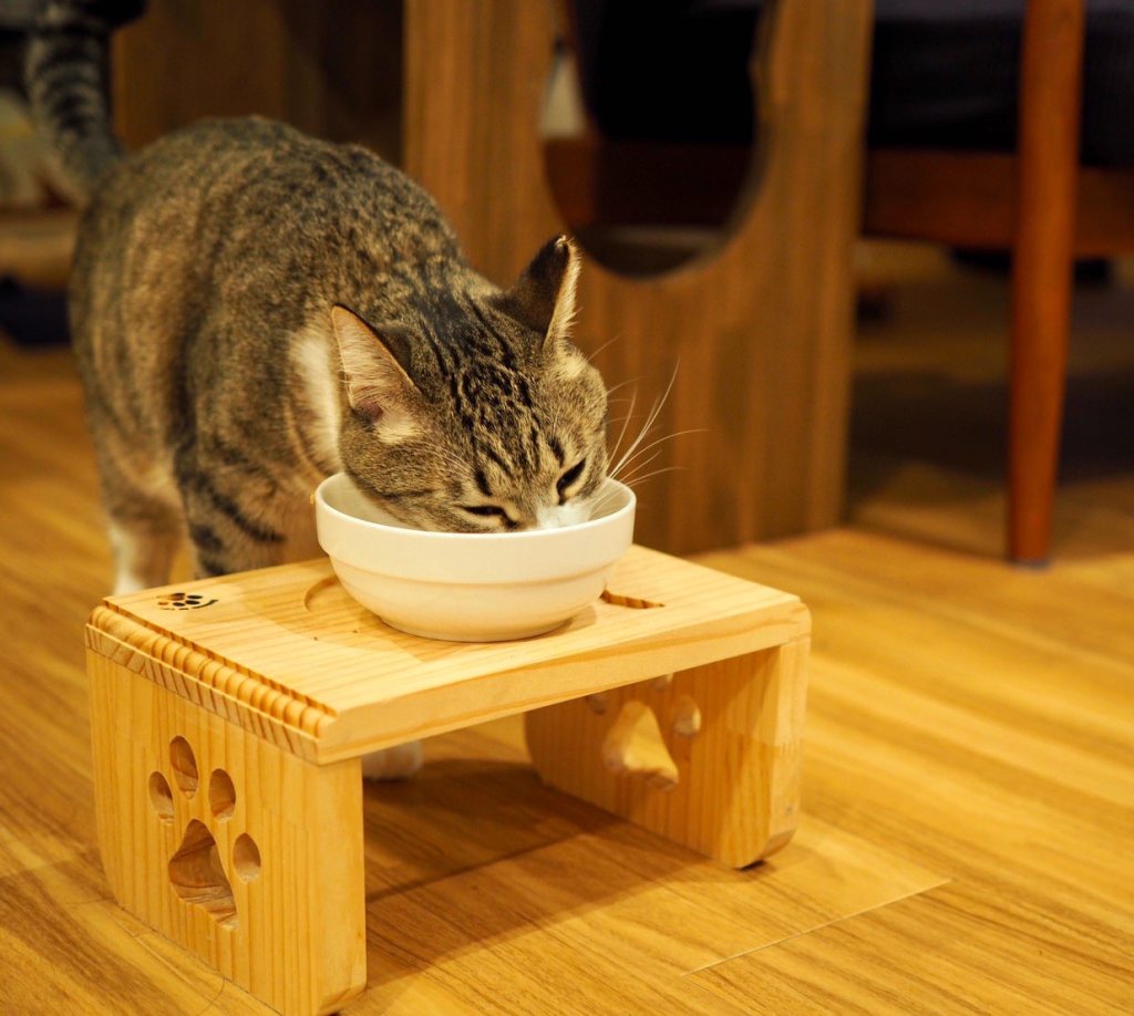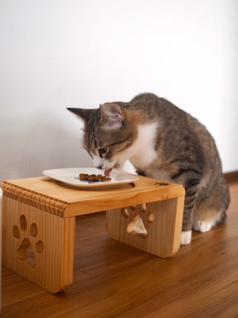 猫ちゃんにちょう良い高さになっており、お腹も圧迫しないので消化に良いです。(高さは配送サイズに影響がない程度の若干の変更は可能ですので、ご希望がございましたらご注文前にお問い合わせください。)